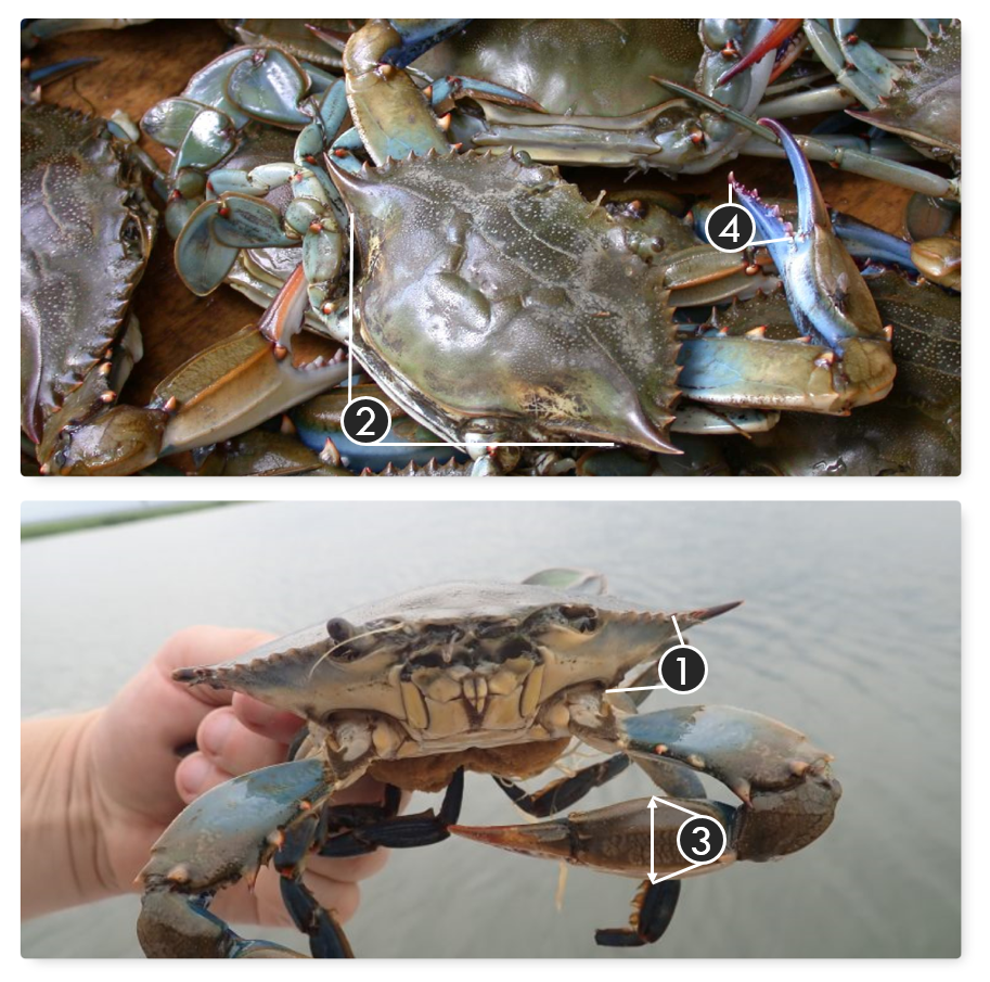 藍蟹背甲是蟹身的兩倍大以上